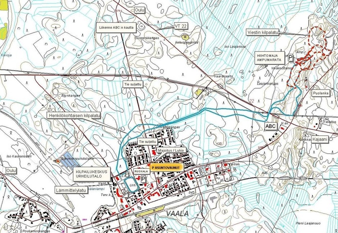 Opastus kilpailukeskukseen Vaalan keskustasta (tie nro 800)
